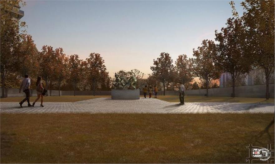 另外一個非常感性的特殊設(shè)計是通過浮雕人物的特征與抽象人物相對應(yīng)。這是對那段時期的一個再現(xiàn)。第三點我們采用那個時代流行的青銅作為主要材料,而不是使用戰(zhàn)后出現(xiàn)的新材料如不銹鋼或更多的合成材料。