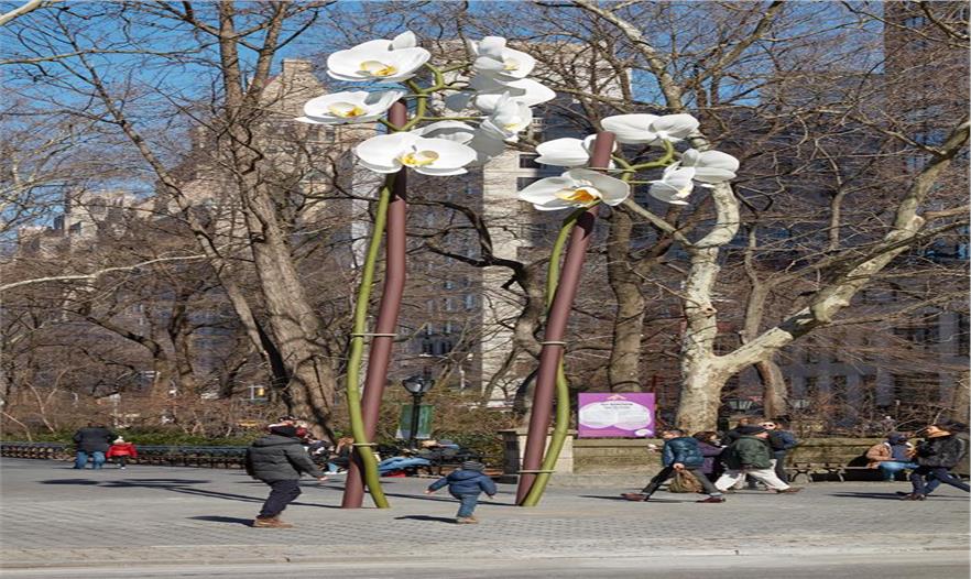 “在她的著名戶外裝置‘玫瑰’引起廣泛關(guān)注的20多年之后,genzken又一次借鑒大自然,創(chuàng)作了一個(gè)讓人印象深刻的新公共裝置作品。”公共藝術(shù)基金會(huì)主席兼首席策展人nicholas baume說(shuō)道,“紅玫瑰被普遍認(rèn)為是愛(ài)的標(biāo)志,蘭花卻有著更為廣泛的聯(lián)想空間,在這兩朵卡通般的巨大蘭花身上尤為如此。蘭花的裝飾性讓它成為我們這個(gè)時(shí)代的花之代表,此外它分布廣泛,隨處可見(jiàn),寓意深刻。”