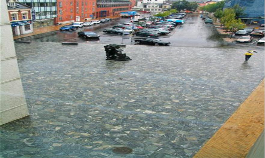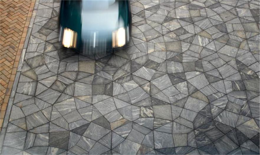 鋪裝路面就像地毯一樣鋪到建筑區(qū),覆蓋在新大廳地面上。