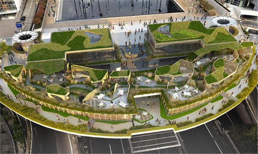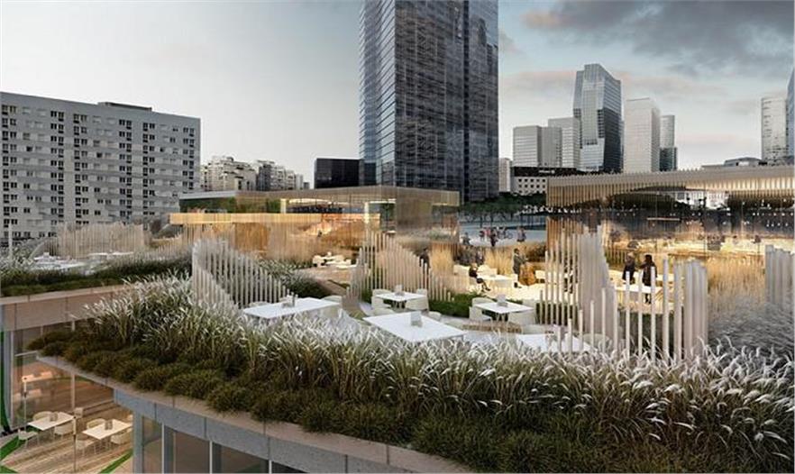 在這條重要的中軸線上,一個城市花園的項目即將開動。法國建筑事務(wù)所 Stéphane Malka 的OxyGen贏得了競標(biāo),他們將在大拱門的不遠處建設(shè)一個帶餐廳的半月形花園,像是懸浮在車道上,成為這片區(qū)域的入口,看起來非常好客。