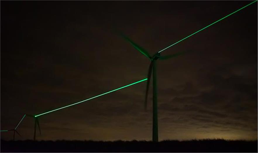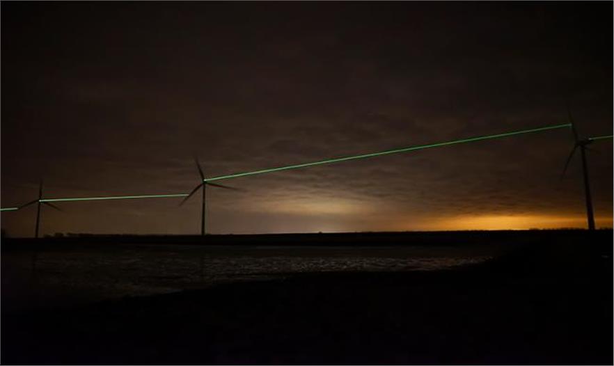 在風(fēng)景如畫(huà)的荷蘭金德代克村,有許多18世紀(jì)的風(fēng)車,羅斯加德設(shè)計(jì)工作室通過(guò)最新的試驗(yàn)裝置將這些綠色能源的美展現(xiàn)了出來(lái)。daan roosegaarde帶領(lǐng)著一隊(duì)設(shè)計(jì)師和工程師,在澤蘭st. annaland的eneco風(fēng)電場(chǎng)制作了作品windlicht(風(fēng)-光),該作品包含一系列明亮的綠色光線,它們從一個(gè)風(fēng)車連接到另一個(gè)風(fēng)車,在空中劃出美麗的動(dòng)態(tài)弧線,讓荷蘭人注意到金德代克的美麗景觀。特制的軟件和跟蹤技術(shù)探測(cè)到槳葉以280km/h(174mph)的速度在旋轉(zhuǎn),在相鄰的兩個(gè)風(fēng)車之間形成了一個(gè)不斷變化的光亮網(wǎng)絡(luò)。