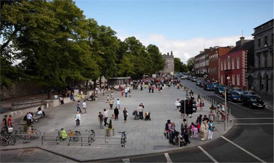 該項目提議進(jìn)行12世紀(jì)基爾肯尼教堂一邊公共空間的改造活動。巡游區(qū)(The Parade)抬升并逐步靠近教堂的入口,能看到高街的景象,而一邊是喬治亞立面和成熟的樹木,清除了停車場,利用連續(xù)的石頭表面將其連接起來。