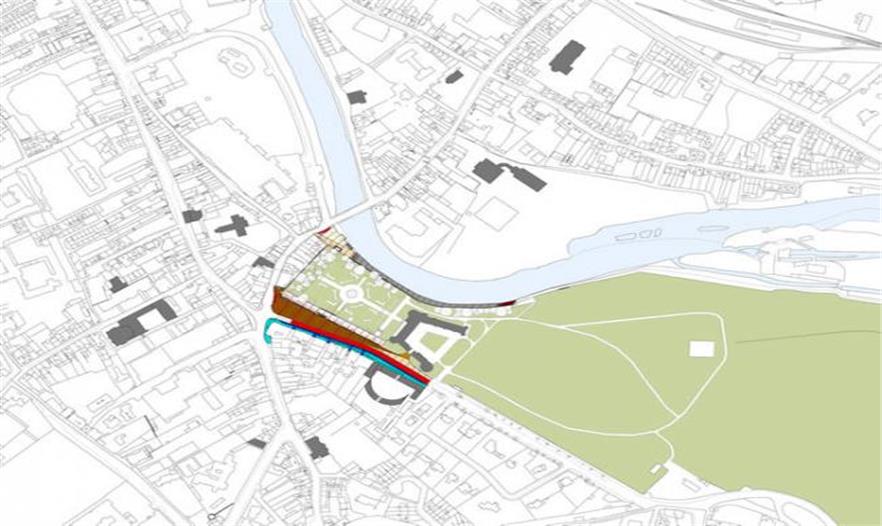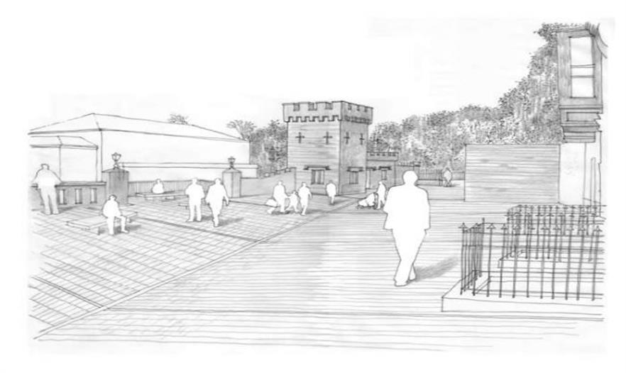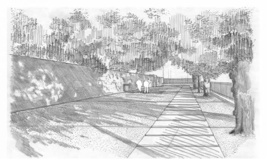 運(yùn)河廣場位于約翰橋沿線,俯瞰著該教堂,以相似的方法建造,然后一條澆筑混凝土道路沿著河流邊緣延伸,一直遠(yuǎn)到教堂的側(cè)門。現(xiàn)有的河岸會被不銹鋼欄桿替代,供游客觀賞河流景色。