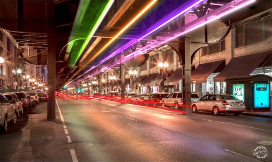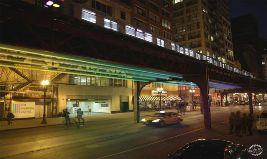 從芝加哥市中心商業(yè)區(qū)的一個(gè)高架列車運(yùn)行軌道上的街道,能看到許多燈光。這就是公共藝術(shù)項(xiàng)目“沃巴什燈“。該項(xiàng)目計(jì)劃新增超過5000個(gè)可編程的LED管沿沃巴什大道麥迪遜街和夢露街之間的兩塊拉伸面。設(shè)計(jì)該項(xiàng)目的團(tuán)隊(duì)最近獲得城市的中轉(zhuǎn)機(jī)構(gòu)的批準(zhǔn),以安裝一個(gè)12英尺長的模板,在一月份總共完成20000個(gè)燈。測試版將運(yùn)行六個(gè)月至一年的時(shí)間,并在應(yīng)用程序中測試燈,這需要500萬美元的資金籌集。