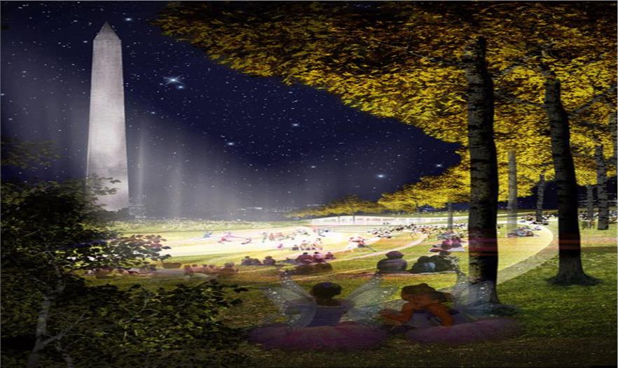 森林劇場(chǎng)(Sylvan Theater)和森林地(Sylvan Grove)從華盛頓國(guó)家廣場(chǎng)的中心延伸出來(lái),修復(fù)其樹(shù)冠覆蓋率,回歸一個(gè)世紀(jì)之前的繁茂景象。