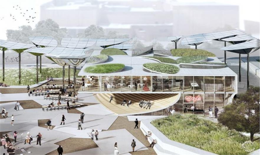 OMA關(guān)于公園園區(qū)內(nèi)餐飲建筑的設(shè)計(jì)通過(guò)一組雕塑來(lái)給在室外空間就餐的人們提供庇護(hù),人們?cè)谥饕貌蛥^(qū)域的外廊中可以眺望整個(gè)園區(qū)的景色,一個(gè)種植著各種可食用農(nóng)作物的屋頂花園則反映出了公園景觀的俏皮可愛(ài)。多層空間的構(gòu)建也使餐飲建筑能夠提供兩種不同級(jí)別的服務(wù):底層空間適合快速且隨意坐在地面上閑聊用餐,上層空間則適合精致而高雅的就餐和討論。每層空間都是經(jīng)過(guò)精心的策劃來(lái)回應(yīng)周圍的市政和文化標(biāo)志性建筑,通過(guò)在底層設(shè)計(jì)一些體驗(yàn)空間(咖啡館、啤酒花園、試驗(yàn)廚房、露天劇場(chǎng)座位)以及二層的各種室內(nèi)外就餐空間等來(lái)激活空間,使用空間。