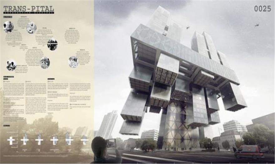榮譽(yù)提名: “變形醫(yī)院:適應(yīng)性空間的醫(yī)院摩天樓”("Trans-Pital: Space Adaptive Skyscraper Hospital") / Chen Linag, Jia Tongyu, Sun Bo, Wang Qun, Zhang Kai, Choi Minhye