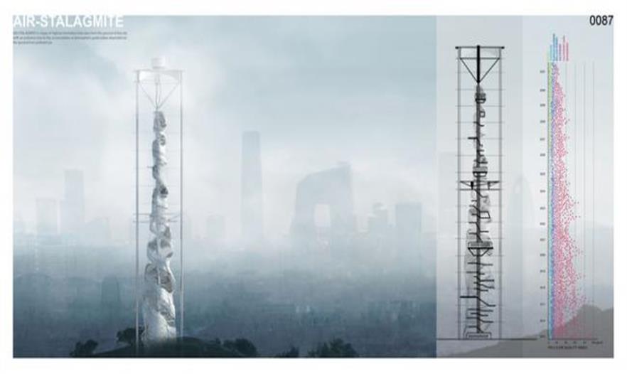 榮譽(yù)提名: “空氣石筍:在空氣污染城市作為燈塔和空氣凈化器的摩天樓”("Air-Stalagmite: A Skyscraper To Serve As A Beacon And Air Filter For Polluted Cities") / Changsoo Park, Sizhe Chen