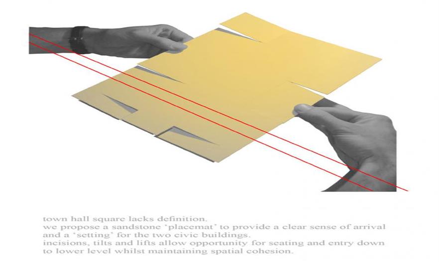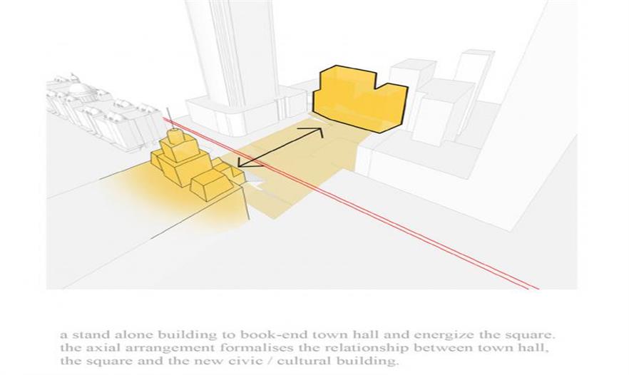 該事務(wù)所的方案是在市政廳的對面建造一個新的文化建筑。兩個建筑之間的這個廣場打破了喬治亞街的線性特征,在環(huán)形碼頭和文化站之間提供了一個停留、休息的地方。市政廣場可以舉辦兩個公共建筑規(guī)劃內(nèi)的各種非正式活動。