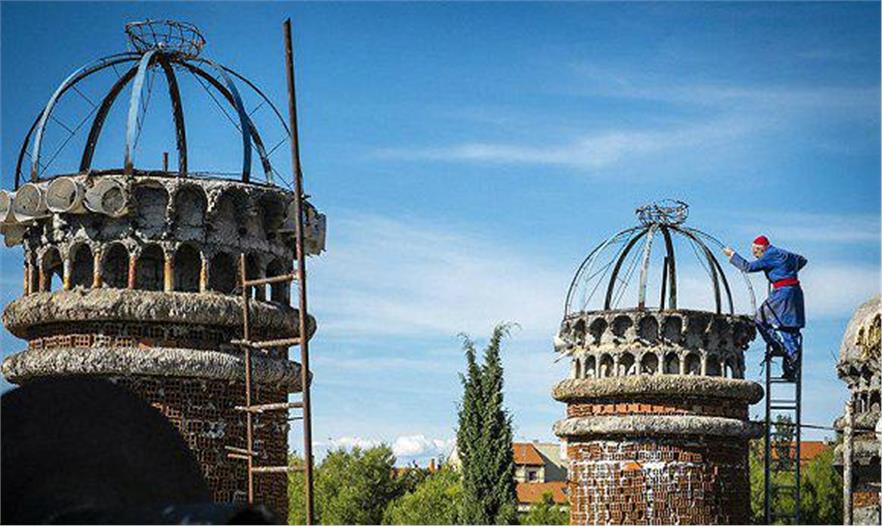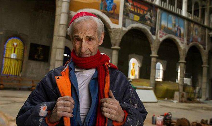 幾十年來(lái)他一直住在這個(gè)教堂的建筑工地中,每天早晨3點(diǎn)半就起床開始干活兒,一干一整天。