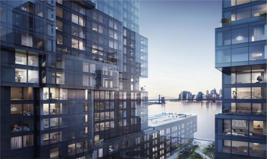 在項(xiàng)目規(guī)劃中還有私人綠化空間,讓居民可以有77,000平方英尺的戶外空間進(jìn)行各項(xiàng)活動。這三棟建筑都是面朝威廉斯堡大橋,東河和曼哈頓中心,并且肯特長廊還有助將原來的木板橋從Greenpoint 延伸到 Dumbo。
