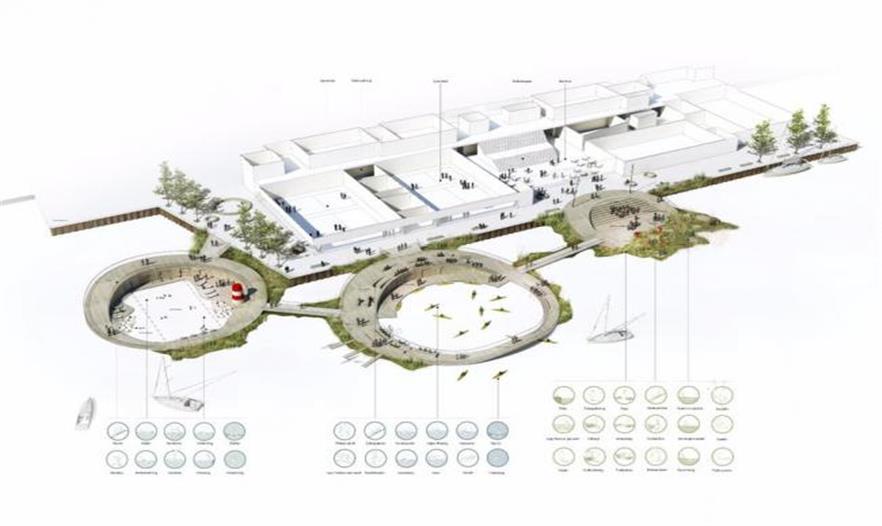 C.F. Møller事務(wù)所將這些島嶼表述成“水上的城市公園”。每個島嶼都有自己的特色,舉辦的活動也會不同。“The Reef”島與其他島嶼不同,因為它也是碼頭區(qū)的延伸,設(shè)有一個多功能平臺,用于教學(xué)和舉辦活動。