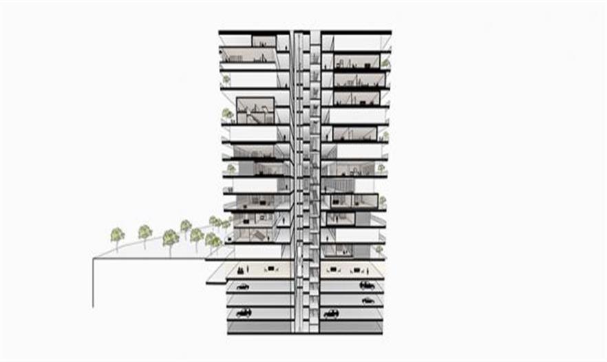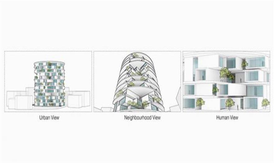 法曼尼赫(farmanieh)住宅塔樓是ZAAD工作室和Marz設(shè)計(jì)公司合作設(shè)計(jì)的一個(gè)概念住宅。以伊朗首都德黑蘭為構(gòu)思背景,這里興起的高層建筑迅速將規(guī)劃區(qū)從果園變成都市,該圓柱形方案將為此錦上添花。大樓放射狀的幾何形提供了360°的美景,水平圓盤在每一層都形成了一些外部空間。
