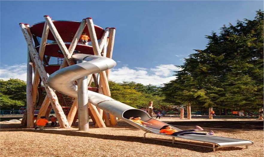 該公園的標(biāo)志性結(jié)構(gòu)——樹(shù)屋、log jam、空中走道、滑梯、山丘堡壘、飛索和大型秋千——都是由不列顛哥倫比亞本土生產(chǎn)的雪松建造。這種類(lèi)型的木頭——溫暖和舒適的材料——是當(dāng)?shù)厣a(chǎn)的,能展現(xiàn)出區(qū)域特征,讓孩子們很容易地接觸到自然。