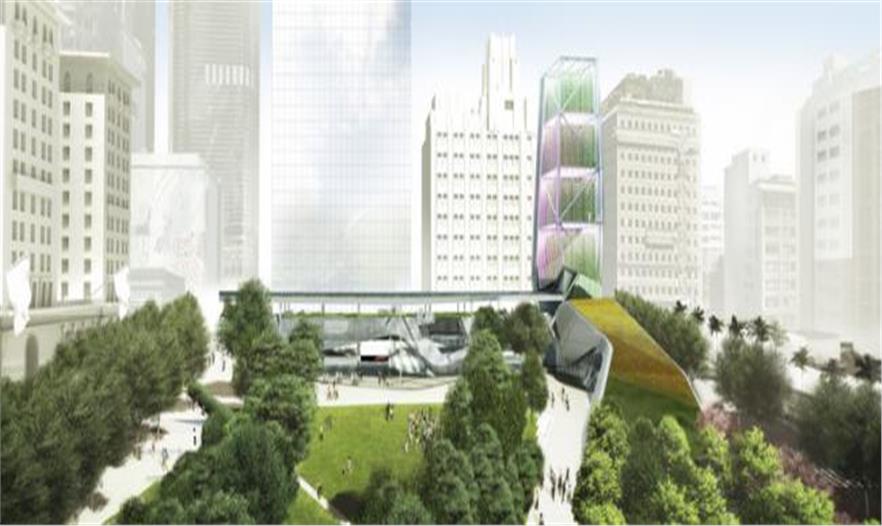 洛杉磯市中心的復(fù)興作為商業(yè)、辦公、餐飲、娛樂和居住的首選地理位置,急需一個(gè)中心廣場(chǎng)來增強(qiáng)地區(qū)核心力,從而擁有更好的社會(huì)、政治、環(huán)境和經(jīng)濟(jì)基礎(chǔ)。我們的方案通過餐飲、特許經(jīng)營(yíng)權(quán)和綠色技術(shù)的教育設(shè)施,共同打造一個(gè)全天候的公園。其中包括一個(gè)自然花園和兒童游樂場(chǎng),伴隨有巨大的、蔥翠的草坪,通過可持續(xù)的濕地水環(huán)境技術(shù)維護(hù)。