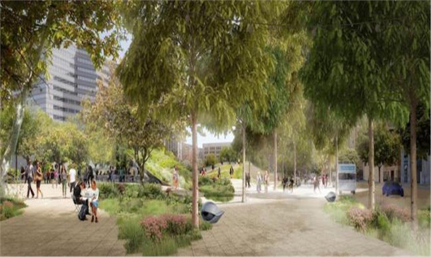 “通過填平高起的表面并移走所有的墻體阻隔,潘興廣場(chǎng)將再次與周邊社區(qū)相連,和城市建立一場(chǎng)真正的對(duì)話,” Henri Bava解釋道,他是Agence TER景觀事務(wù)所的負(fù)責(zé)人。“重新將靈活的功能以及自然元素植入廣場(chǎng),將為洛杉磯市中心地區(qū)塑造強(qiáng)烈的標(biāo)識(shí)性;新的公園旨在建立一個(gè)城市生態(tài)系統(tǒng),其中包括一個(gè)可提供樹蔭的巨大棚架、吸引人的草坪以及加利福尼亞式的花園。它將為城市營(yíng)造一個(gè)綠色的、可持續(xù)的、極具活力的目的地,同時(shí)因其賓至如歸的質(zhì)樸性,也會(huì)變得永久、優(yōu)雅。”