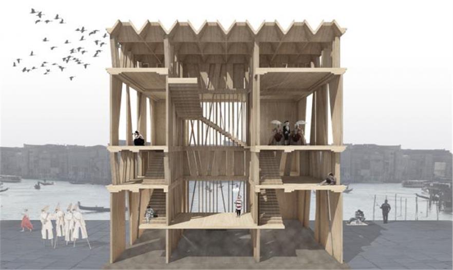 “威尼斯森林”將在威尼斯雙年展的兩個主要展館 - Giardini 和 Arsenale之間進行展出,這兩個展館建于1894年,Kjellander + Sjöberg公司在相鄰的花園里制作了一個實木的展臺。