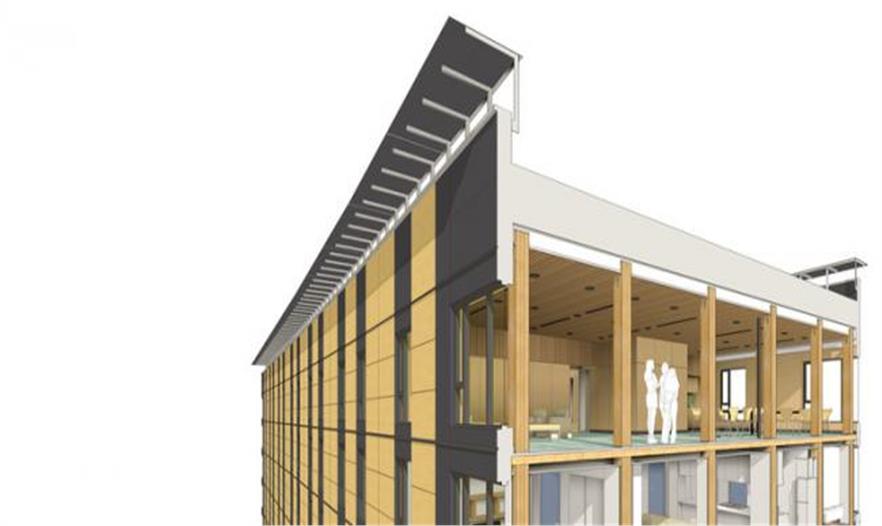 在混凝土核心部分完成后,它的木結(jié)構(gòu)和立面部分將會(huì)以每周至少一層的速度建設(shè)。利用預(yù)制材料,還有CLT坯板,膠合板立柱,鋼構(gòu)件連接器和立面元素,建筑達(dá)到了如此高的建造速度。為驗(yàn)證可行性,去年的7月份成功的進(jìn)行了2個(gè)樓層施工驗(yàn)證。該建筑的設(shè)計(jì)目標(biāo)是獲得LEED金牌認(rèn)證,并融入U(xiǎn)BC地區(qū)的能源系統(tǒng),采用碳隔木結(jié)構(gòu),將會(huì)減少碳排放2563噸(相當(dāng)于490輛汽車一年餓排放量)。人們希望一旦 公寓建成,不列顛哥倫比亞省的高層木結(jié)構(gòu)建筑將被重新定義,而大眾化的木結(jié)構(gòu)建筑將會(huì)變得更加普遍。