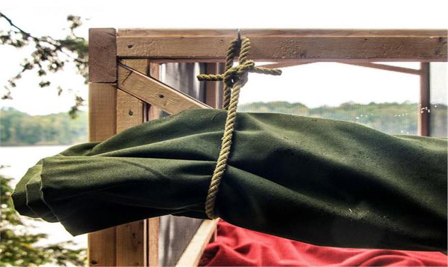 當下雨的時候,防水帆布罩就會鋪開擋雨。不用時,就會卷上,懸掛在平臺的后面。
