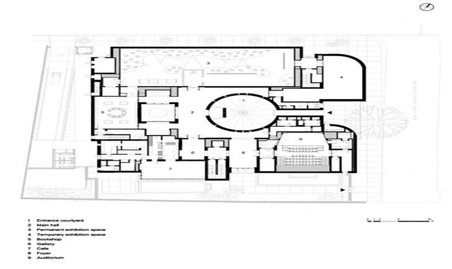 這一建筑的設(shè)計(jì)者是法國建筑工作室KO,整個(gè)場館空間達(dá)4,000平米,包括一個(gè)由Christophe Martin設(shè)計(jì)的400平米的永久性展覽空間,一個(gè)150平米的臨時(shí)展覽空間,一個(gè)擁有130個(gè)座位的禮堂,一間書店,一家?guī)в新杜_的餐廳,和一座有5,000本藏書的圖書館。