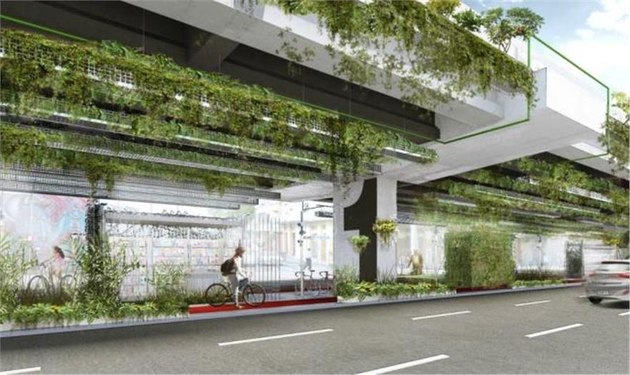 Triptyque Architecture事務所公布了一個宏偉的方案,將長期被遺棄的Minhoc?o高架橋下面改造成一個活躍的公共空間,并種植吊掛植物。建筑師與景觀設計師Guil Blanche合作計劃在3千米長的高架區(qū)上懸掛富氧植物,能過濾20%的二氧化碳排放。