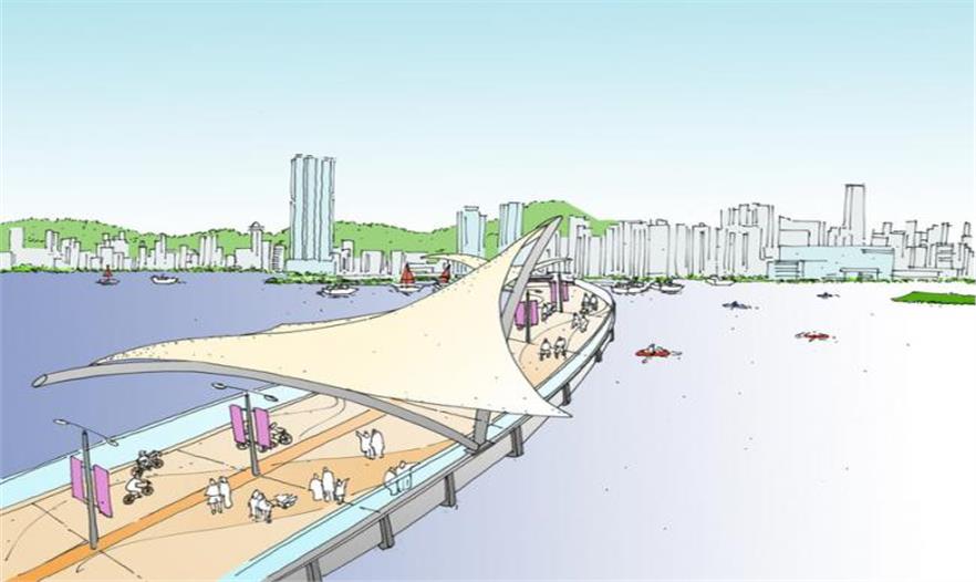港口的南北兩側(cè)將布置一條六米寬的路徑,為步行、跑步和騎車的人提供,其上有兩種不同的交通模式,穿過(guò)城市的水域。城市的西側(cè),一座纜車將在香港島的中央?yún)^(qū)域穿行1.5千米,成為望向西九龍文化區(qū)的眺望甲板。維多利亞港的東側(cè)有一條500米長(zhǎng)的人行橋,連接了香港海防博物館和筲箕灣水域上的鯉魚(yú)門(mén)村落。