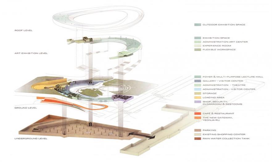 該中心被定位成舉辦一系列文化,教育和社區(qū)活動(dòng)的場(chǎng)地。這些功能場(chǎng)地包括了建筑外殼內(nèi)的圍合區(qū)域與變形的花園。該建筑是由一系列的復(fù)合空間組成,有靈活性的主機(jī)從專業(yè)設(shè)施到畫廊空間,社會(huì)空間和會(huì)議點(diǎn)。該中心將促進(jìn)研究,保護(hù)和教育,為游客提供一個(gè)地方,積極參與和學(xué)習(xí)或選擇,坐在簡(jiǎn)單地坐著和斷開。