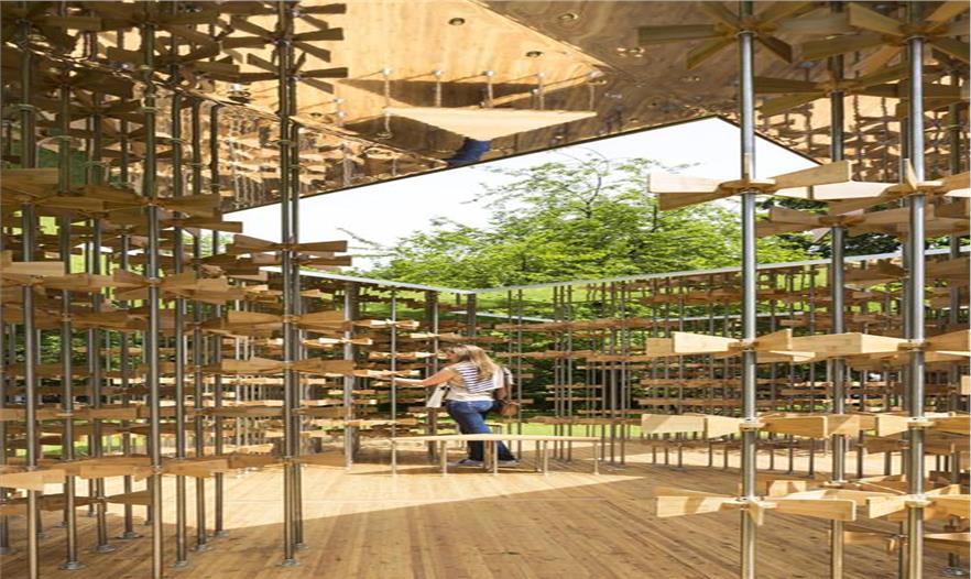 該館由Arup 工程公司進行施工,占地64平方米,完全自立的。它主要是由竹子和可持續(xù)性材料構成,并采用了不銹鋼棒,木材,CLT面板和鋁板包層。