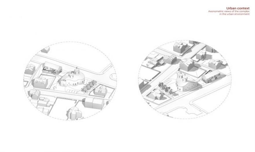 俄羅斯的宗教建筑一直保持著懷舊風(fēng)格,這一點(diǎn)一直廣受爭(zhēng)議。由于蘇聯(lián)在20世紀(jì)施行的反宗教立場(chǎng),俄羅斯的宗教建筑幾乎沒(méi)有什么發(fā)展的機(jī)會(huì)。俄羅斯建筑師Philip Yakubchuk 開始重新“學(xué)走路”,重新發(fā)現(xiàn)曾經(jīng)輝煌的歷史。在這一復(fù)興舉措之下,許多年輕建筑師都渴望超越歷史上著名的圣巴索大教堂,為俄羅斯創(chuàng)造21世紀(jì)的教堂印象。其中一個(gè)組織名為 Quadratura Circuli,由 Daniil Makarov, Ivan Zemlyakov 和 Philip Yakubchuk 三人組成。這一組織的拉丁文名字意思是“將圓切方”,比喻不可能完成的事——一個(gè)為這一決心為當(dāng)代人民設(shè)計(jì)宗教場(chǎng)所的組織的震撼人心之名。然而,通過(guò)他們?cè)诒鶏u Reykjavik 的俄羅斯正教文化中心項(xiàng)目,Quadratura Circuli 展示了將過(guò)去的藝術(shù)聯(lián)系到現(xiàn)在的文化的可能性。