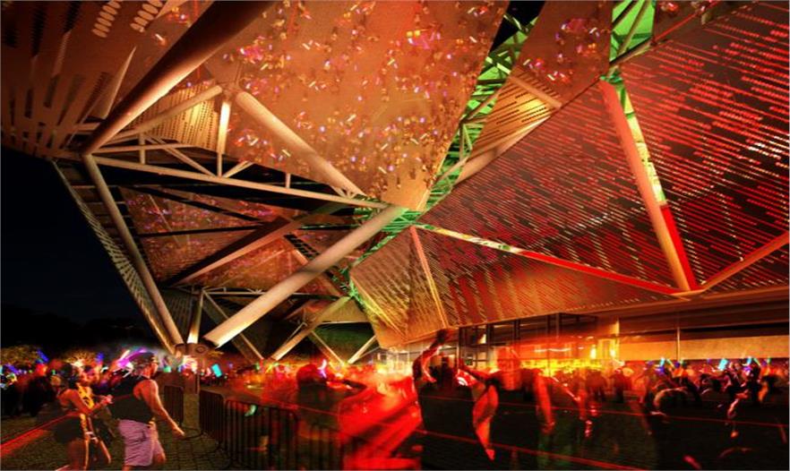 改造的重點是屋頂,設計師用一個“動態(tài)三維桁架系統(tǒng),以龍卷風的形式,象征著目前正在全球流行的韓國文化所扮演的核心作用”,建筑師在一份新聞稿中描述到。