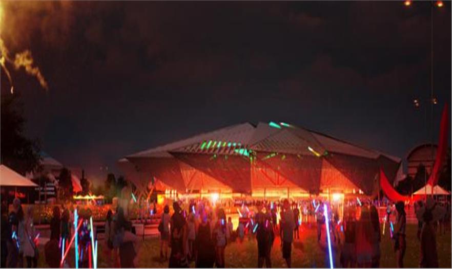 該項目是由韓國的 Haeahn Architecture 建筑事務所和紐約的 H Architecture 建筑事務所共同合作,他們的設計方案在韓國新 K-Pop音樂廳設計競賽中勝出。由韓國體育振興基金會主辦,設計競賽的主要目的是尋求一個改造1988年奧運會主會場的設計方案,地點就在韓國首爾的奧林匹克公園內(nèi)。