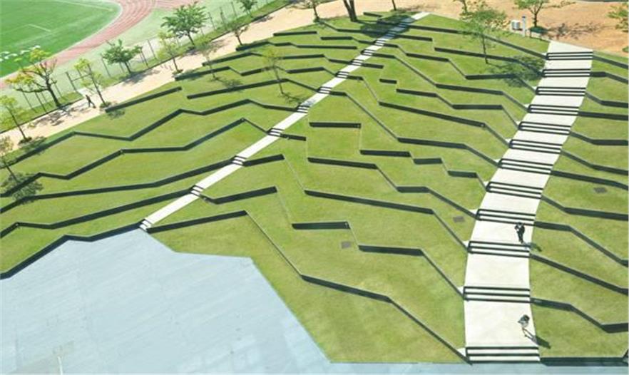 九州產(chǎn)業(yè)大學(xué)的項目包括3個主要區(qū)域,其中一個像圓形劇場,由不規(guī)則線條構(gòu)成,讓人能夠想起傳統(tǒng)的梯田。這個空間讓人們在此消磨時間或等待,觀賞漂亮的區(qū)域景色,重點是樟腦樹的種植。這個設(shè)計會喚起使用者自己體驗這些不規(guī)則線條的欲望。