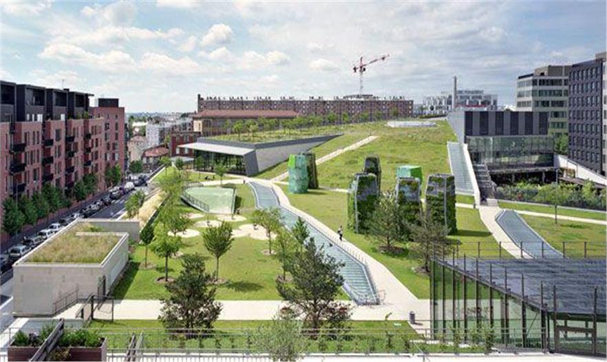 Bienvenüe空間起伏的平臺是這個可持續(xù)建筑的一個特色。這個平臺是一個完美的元素,打破周圍環(huán)境中其他的線性特質(zhì)。其上面設(shè)有草地,提供了一個大型的休閑公園,而且也是所有綠色屋頂愛好者以及對生物氣候設(shè)計感興趣的人必看的區(qū)域。