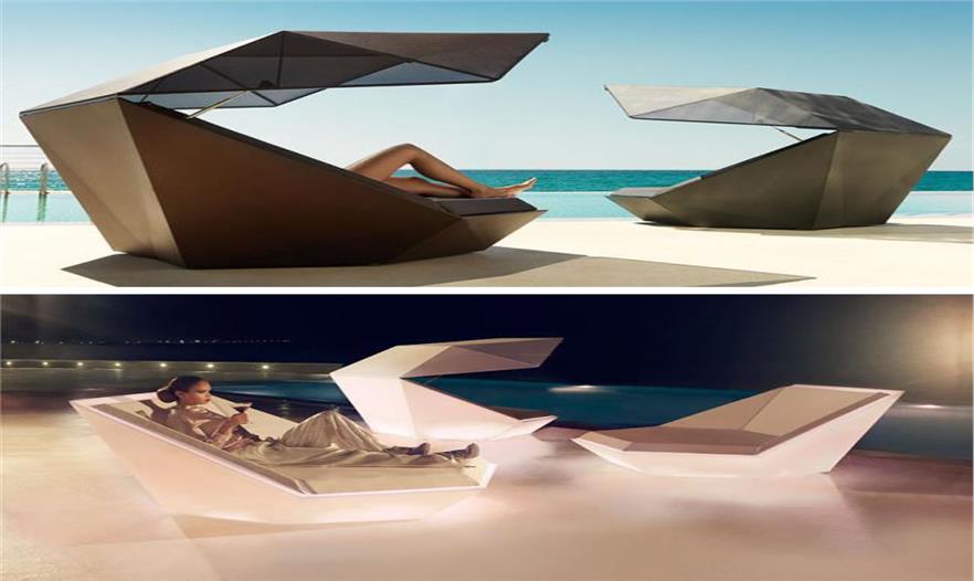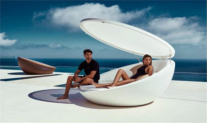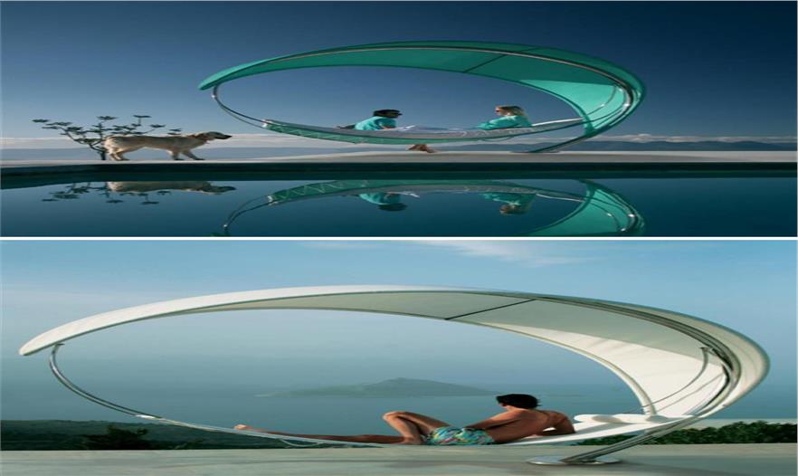 3.這個(gè)兩用長(zhǎng)椅是受貝殼啟發(fā)建造,能夠旋轉(zhuǎn),這樣你就可以旋轉(zhuǎn)著觀賞到周?chē)囊磺惺挛?,貝殼蓋還能在炎熱的天氣中遮擋陽(yáng)光。
