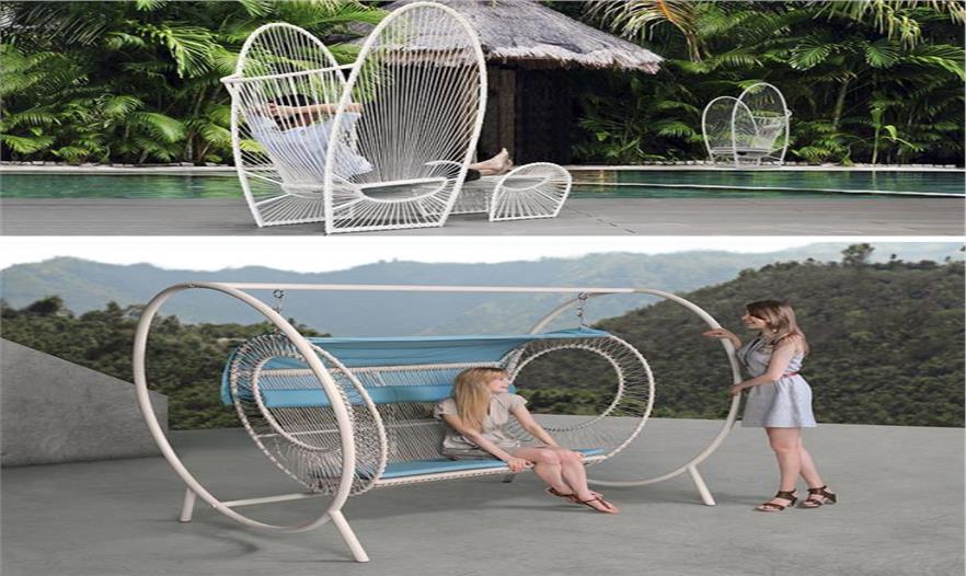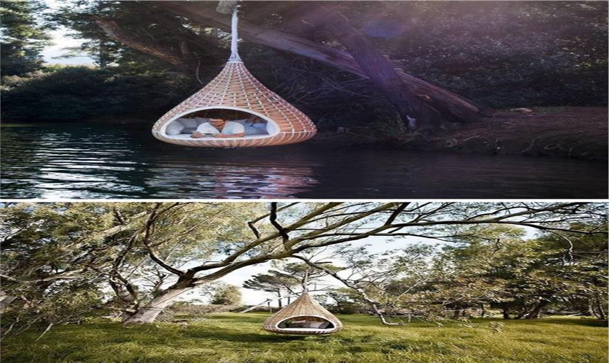 5. 人們?cè)谶@個(gè)大型、懸掛的沙發(fā)里享受自然,在風(fēng)中搖曳。