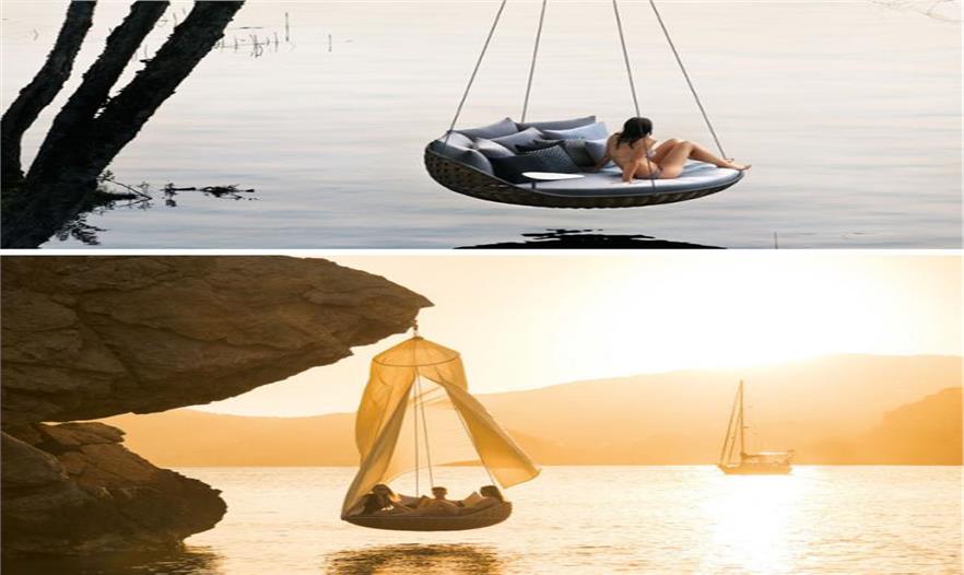 12. 這個(gè)單獨(dú)的吊床既能隨風(fēng)移動(dòng),又能欣賞風(fēng)景,看起來(lái)更像一件藝術(shù)品。