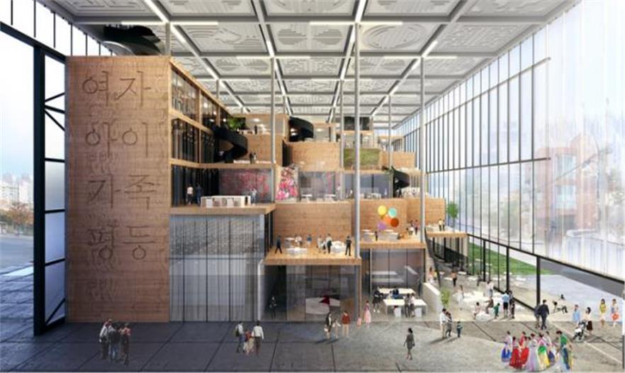 這座新建的大樓將會成為婦女廣場和附近火車站之間的連接場所,作為一個公共和私人的混合空間,它希望能夠幫助這里”形成一個具有創(chuàng)新文化,傳統(tǒng)教育的場所,并在家庭和社區(qū)之中宣傳性別平等的價值觀。”
