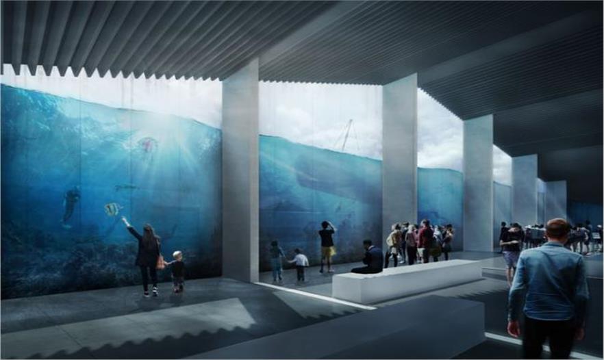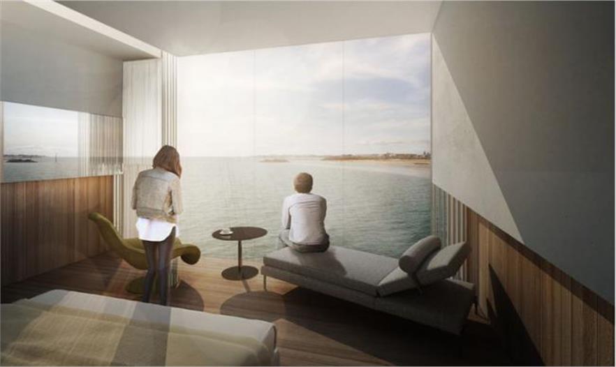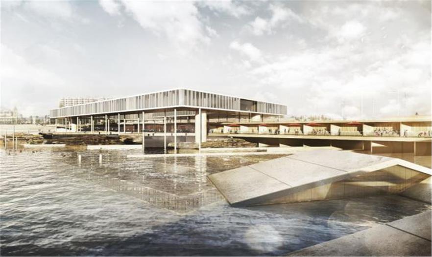 酒店將建在碼頭的上面,它沿著碼頭的長度方向為人們提供了一個庇護場所,并且還罩著下面重建的海濱浴場。