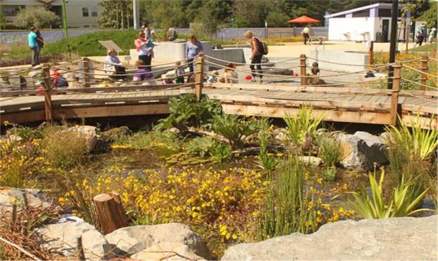 該公園還有植物凈化區(qū)域,種有特定的植物、水和甲板、橋和開放區(qū)域,為游客留出想象的空間。
