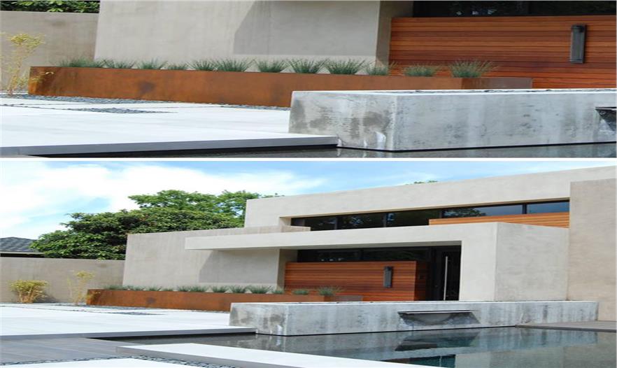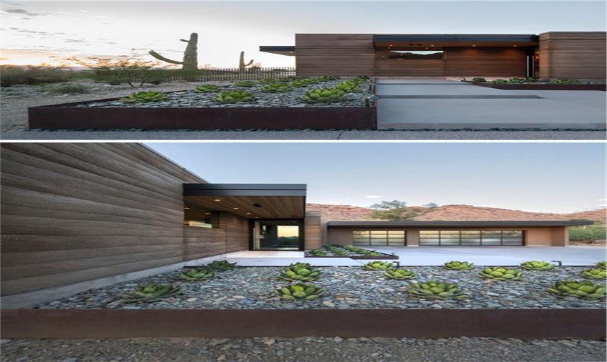 3.在耐候鋼花盆中放置多肉植物和大型石頭會為房屋的前院增色,增強外觀魅力。