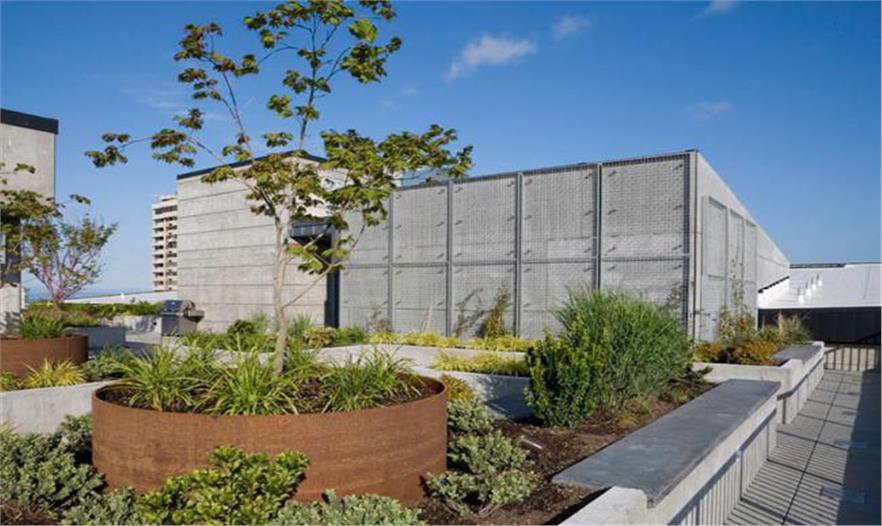 7.這些花盆是由耐候鋼的曲面建造而成,增加規(guī)模,為種植更多的植物留出空間。