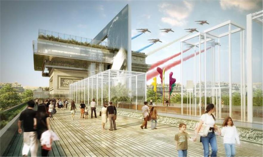 法國(guó)建筑師Patterlini Benoit 計(jì)劃在巴黎的凱旋門紀(jì)念碑周圍建造一個(gè)多功能建筑,該建筑將會(huì)將一半的凱旋門圍住。凱旋門是為了為紀(jì)念拿破侖率領(lǐng)下的法國(guó)軍隊(duì)所取得的勝利于1836年建造完成的,巴黎的凱旋門是法國(guó)最具代表性,也是世界上的一個(gè)最具觀賞性地標(biāo)性建筑。但是Benoit 卻認(rèn)為,以其旅游目的地的地位已經(jīng)逐步從巴黎居民的日常生活中消失。因此他建議對(duì)其做些改變,制作一個(gè)拱門型的巨大鏡像平面為環(huán)繞在凱旋門周圍,讓人們?cè)谝曈X上有了另一個(gè)角度來(lái)觀看紀(jì)念碑,并能為其提供一些新的功能。Benoit聲稱,如果以這種方式進(jìn)行改造,該紀(jì)念碑將變成一個(gè)“并沒有否認(rèn)歷史的現(xiàn)代建筑”。