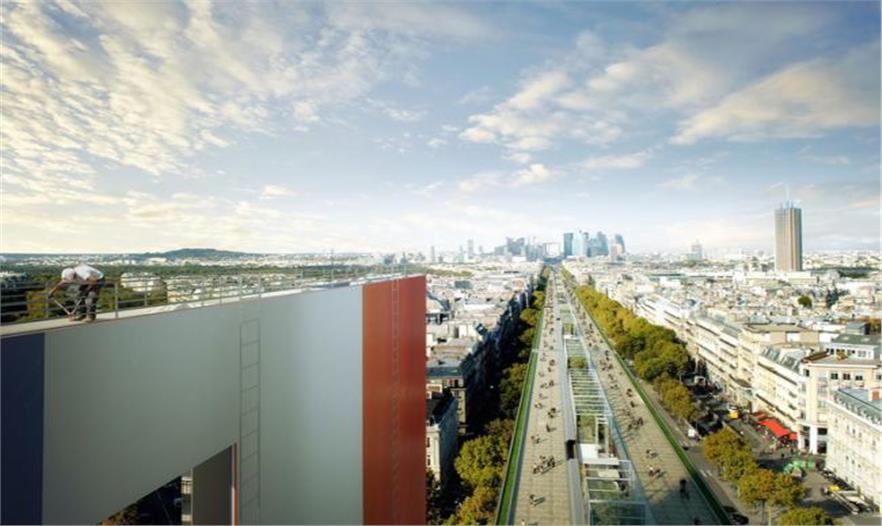 Benoit還解決了這里的交通問(wèn)題。由于這里是世界上最著名的環(huán)形交叉路口中心,位于戴高樂廣場(chǎng)中央,目前到這里來(lái)需要穿過(guò)12條車道或者是通過(guò)地下人行通道進(jìn)來(lái),。在Benoit的方案中將會(huì)建造一座連接著紀(jì)念碑和附近納伊地區(qū)的新的景觀天橋。這座天橋?qū)⒃试S行人和自行車通行,成為了城市中的一條新的綠色走廊。