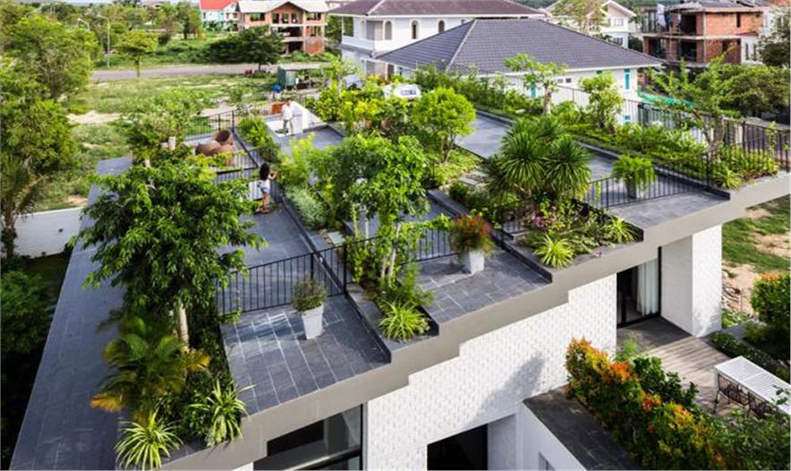 該房屋位于越南芽莊,由Vo Trong Nghia Architects事務(wù)所和ICADA事務(wù)所設(shè)計。它是階梯式屋頂,各個梯田空間種滿了植物。