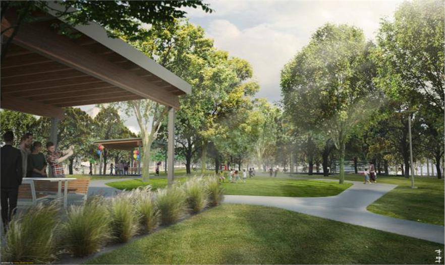 這個新濱河公園也將提供步行道和自行車道,連接該河西岸發(fā)展區(qū)中的林蔭道和東邊現(xiàn)有的濱河道。