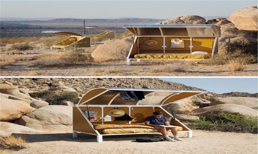 加利福尼亞州沙漠的山石間有許多這樣的小房間,藝術(shù)家、作家、思想家、徒步者和露營者可以預(yù)定住宿。