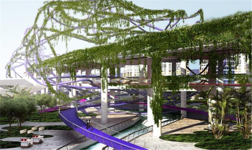 項(xiàng)目受到了生態(tài)影響與減少碳足跡等目標(biāo)的持續(xù)推動。經(jīng) Jon Sealy 確認(rèn)的主要課題包括了空氣質(zhì)量、水的用量、健康與能源使用以及對這些問題的回應(yīng)??沙掷m(xù)元素將會穿插在"泰線"之中。垃圾處理中心、健康中心和私人的居住區(qū)將會植入在項(xiàng)目之中,諸如太陽能樹和灰色水儲藏站等可持續(xù)手段也將會被整合采用。