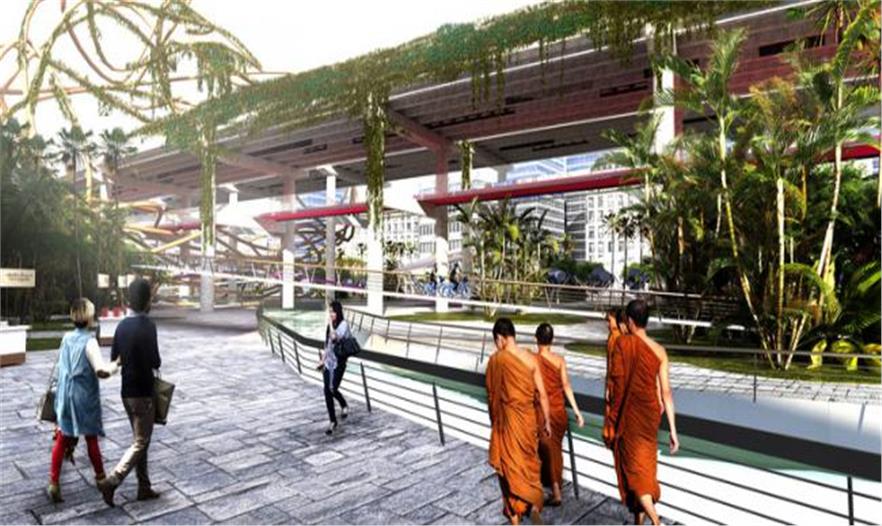 人口爆炸、污染、擁堵以及飛漲的地價使泰國的曼谷面臨了越來越大的城市功能壓力。曼谷最著名的就是其城市活力與日夜不停的喧鬧活動,但它也在努力匹配這種快速的擴(kuò)展節(jié)奏。為了在這個大城市里緩解壓力并重新植入公共領(lǐng)域,一個新的方案由此誕生,它把原有的底層主要高速路變成了公共的空間網(wǎng),并命名為“泰線”。