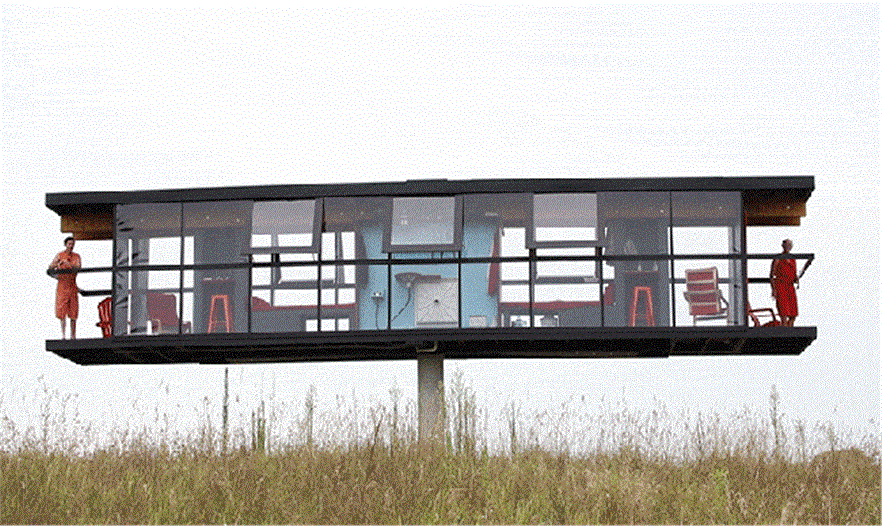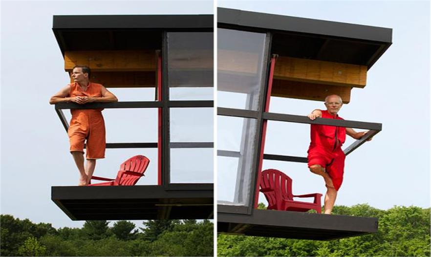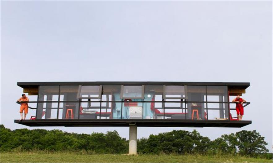 這個住宅規(guī)模是13米×2米(44英尺×8英尺),可以360度旋轉,位于4米(15英尺)的混凝土支柱上面。