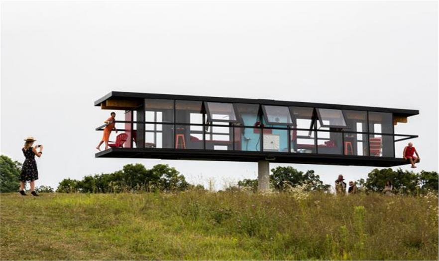 紐約根特OMI藝術中心最近展出了這個獨特地建筑,名為“ReActor”,由建筑師亞歷克斯•施韋德爾(Alex Schweder)和藝術家沃德•雪萊(Ward Shelley)合作設計建造。這個建筑是一個可居住的雕塑,用于5天的展覽居住。